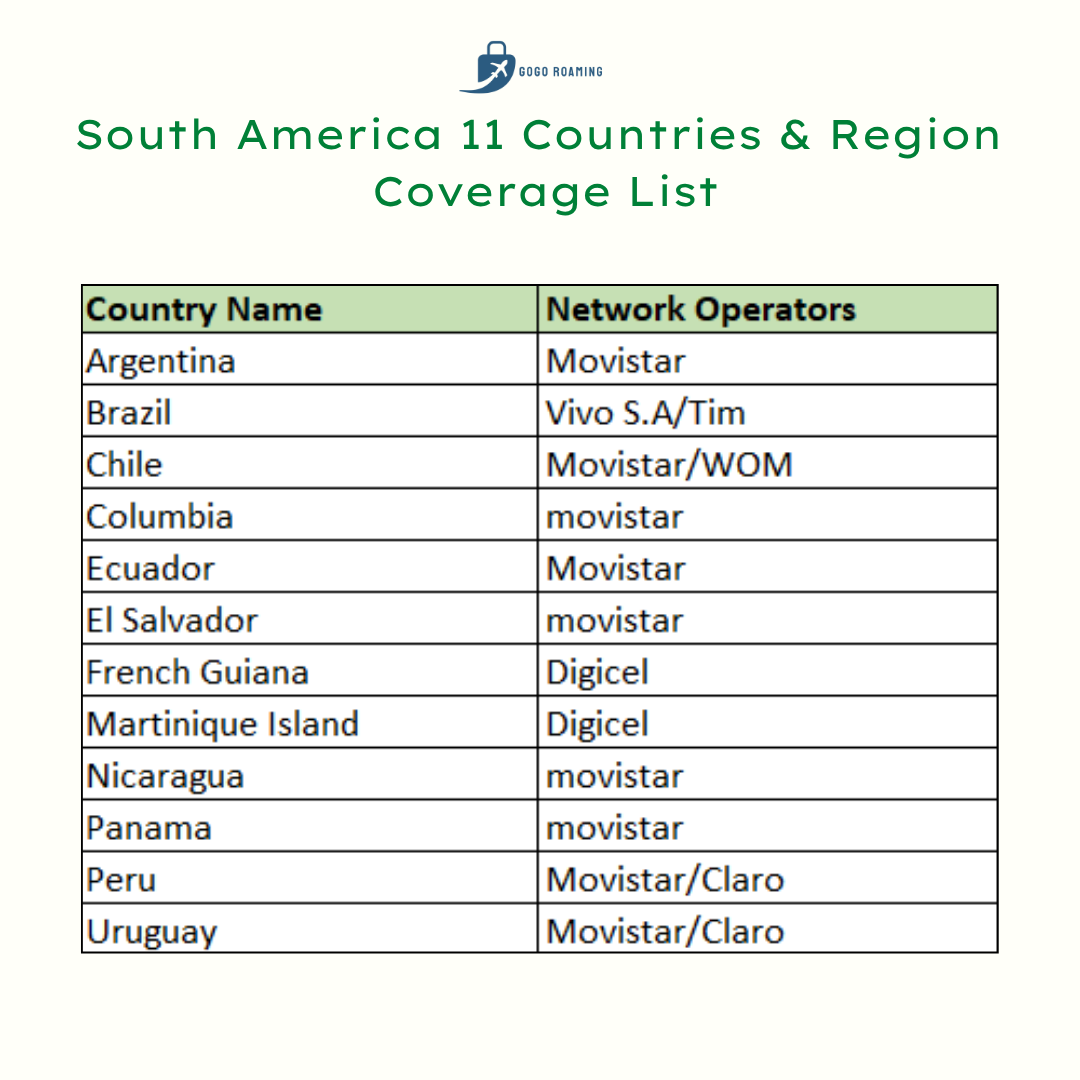 South America 11 Multi Regions Travel Data Sim Card