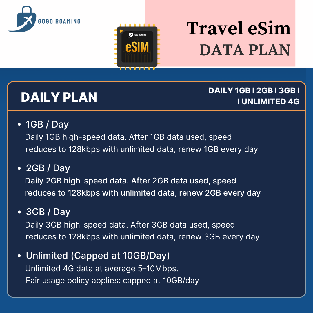 – 3GB/day :【Daily 3GB of high speed data and speed down to 128kbps (unlimited data with 128kbps) after high speed data used , refresh everyday】