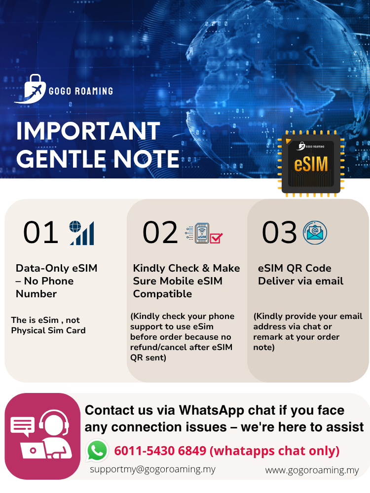 ✅ If you are looking for eSIM data top-up or plan extension, Kindly contact us for assistance