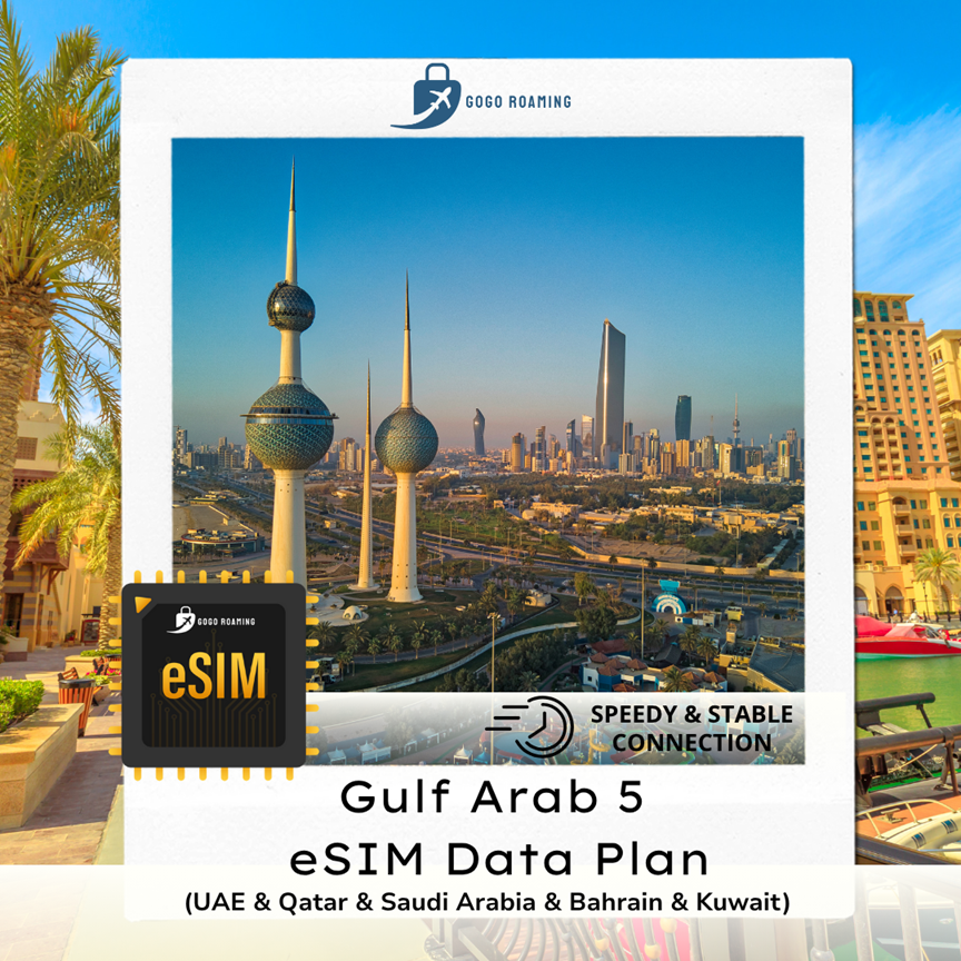 【eSim】Gulf Arab 5 Country (UAE, Qatar, Saudi, Bahrain, Kuwait) eSIM Data Plan