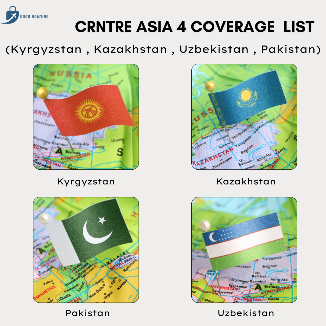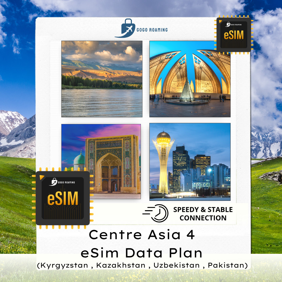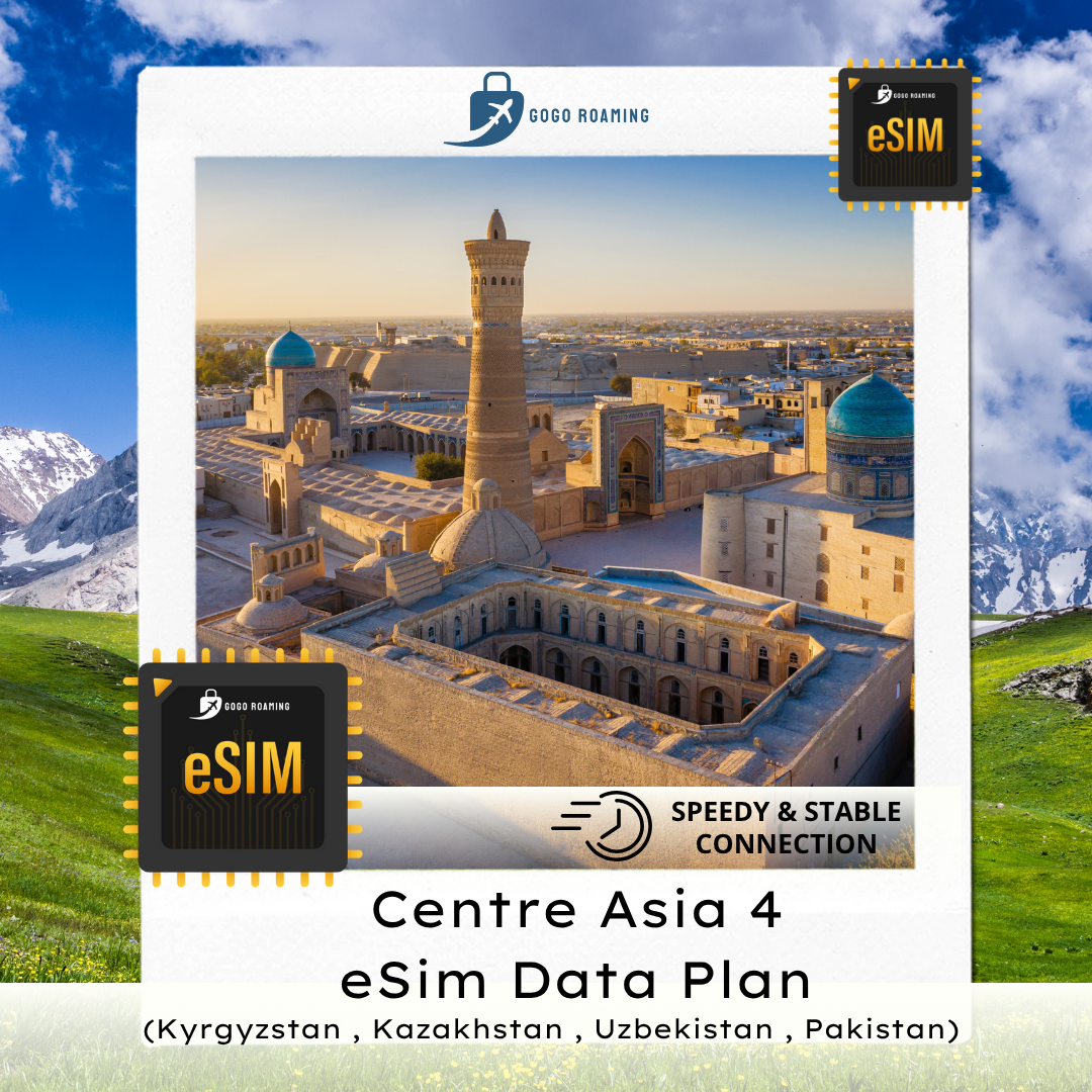 【eSIM】Centre Asia 4 (Kyrgyzstan, Kazakhstan, Uzbekistan, Pakistan) Travel eSIM Data Plan